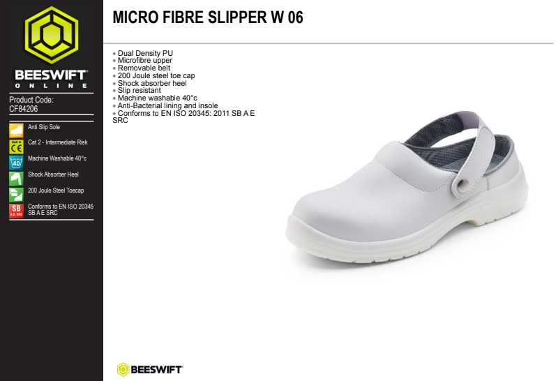BEECF84206 Micro Fibre Safety Slipper White Size 6