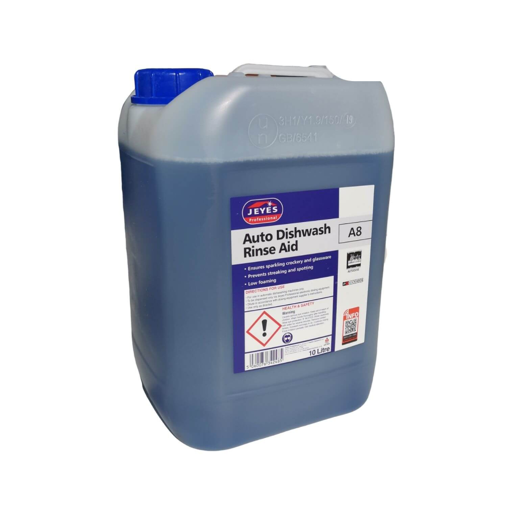 Jeyes' A8 Rinse Aid works automatically in your dishwasher to leave your cutlery and crockery feeling clean, quickly and easily.
